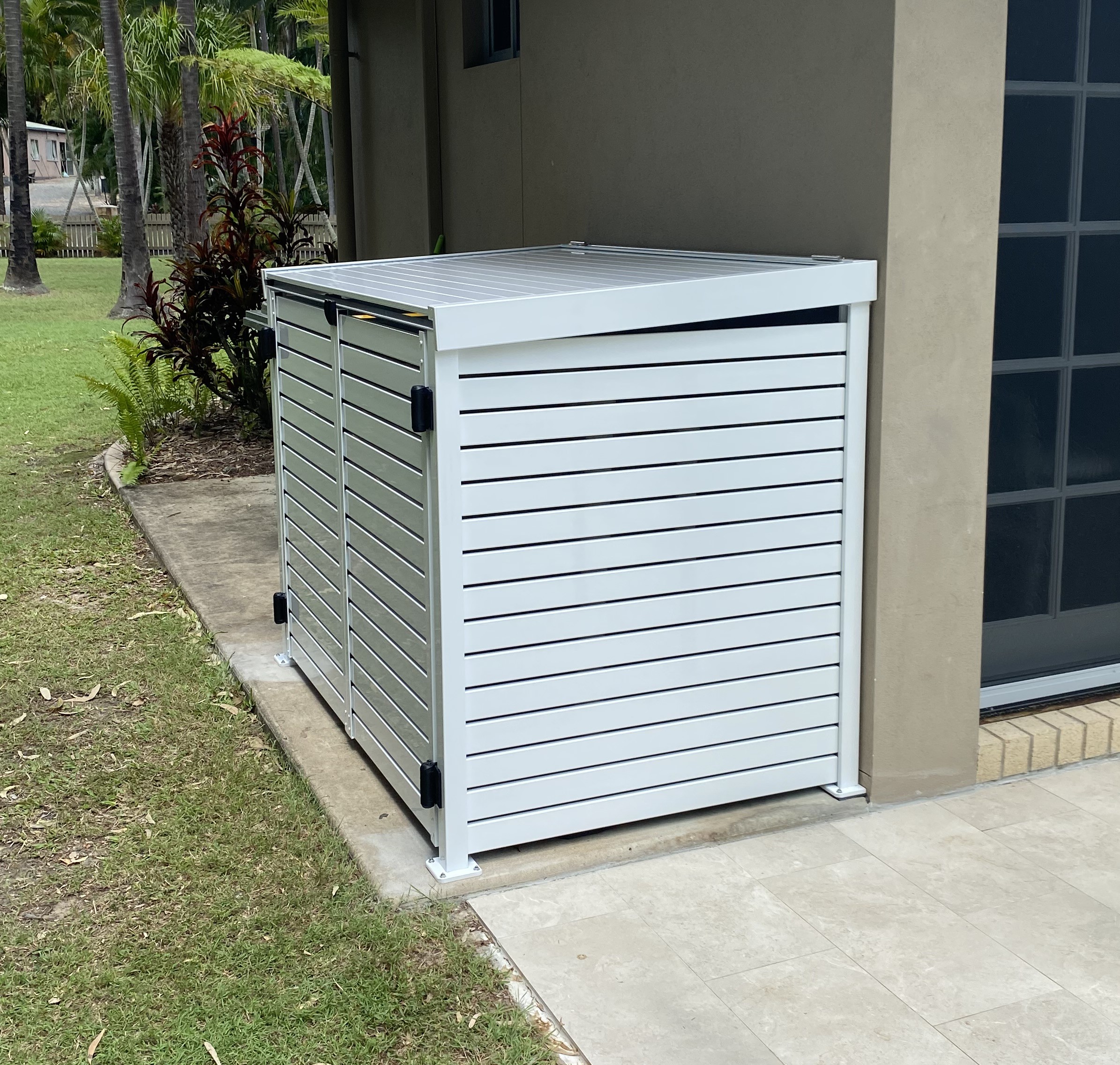 Introducing our stylish equipment enclosures, an ideal solution for transforming your outdoor space while concealing pool filters, rubbish bins, air conditioners and equipment.